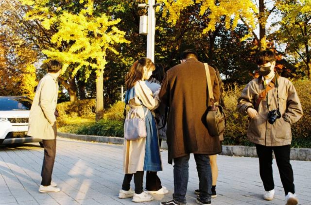장소는 올림픽공원이며, 핑크뮬리를 활용해 인물 사진을 찍었습니다.