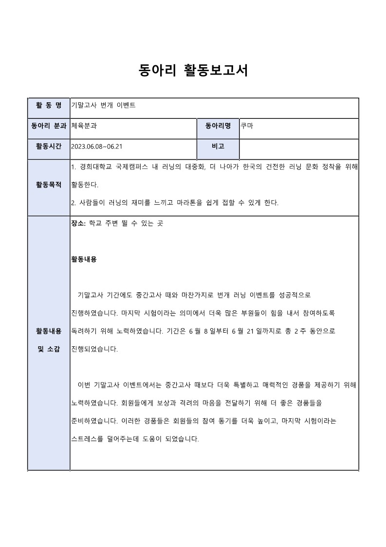 | 경희대학교 농구부 프런트 KBF 2025 2학기 활동보고서 (재제출) | 2025. 09. 01. ~ 2025. 12. 20. |